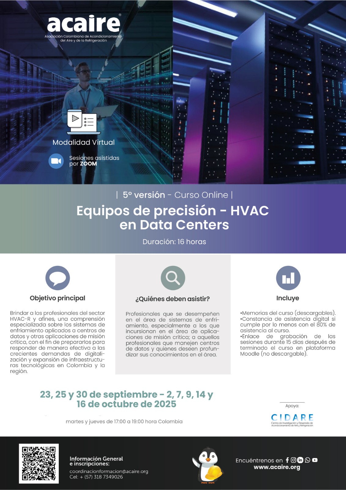 consultoría y dirección de proyectos de enfriamiento y datacenters. Ha sido trainer para APC en Latinoamérica, especialista en Building Commissioning (ASHRAE 202) y expresidente del Capítulo Colombia de ASHRAE, donde participa activamente en el Comité Técnico TC 9.9.