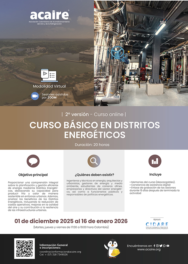 - Capacitar a los participantes en el diseño, implementación, mantenimiento, operación y evaluación técnico-económica de proyectos de Distritos Térmicos.