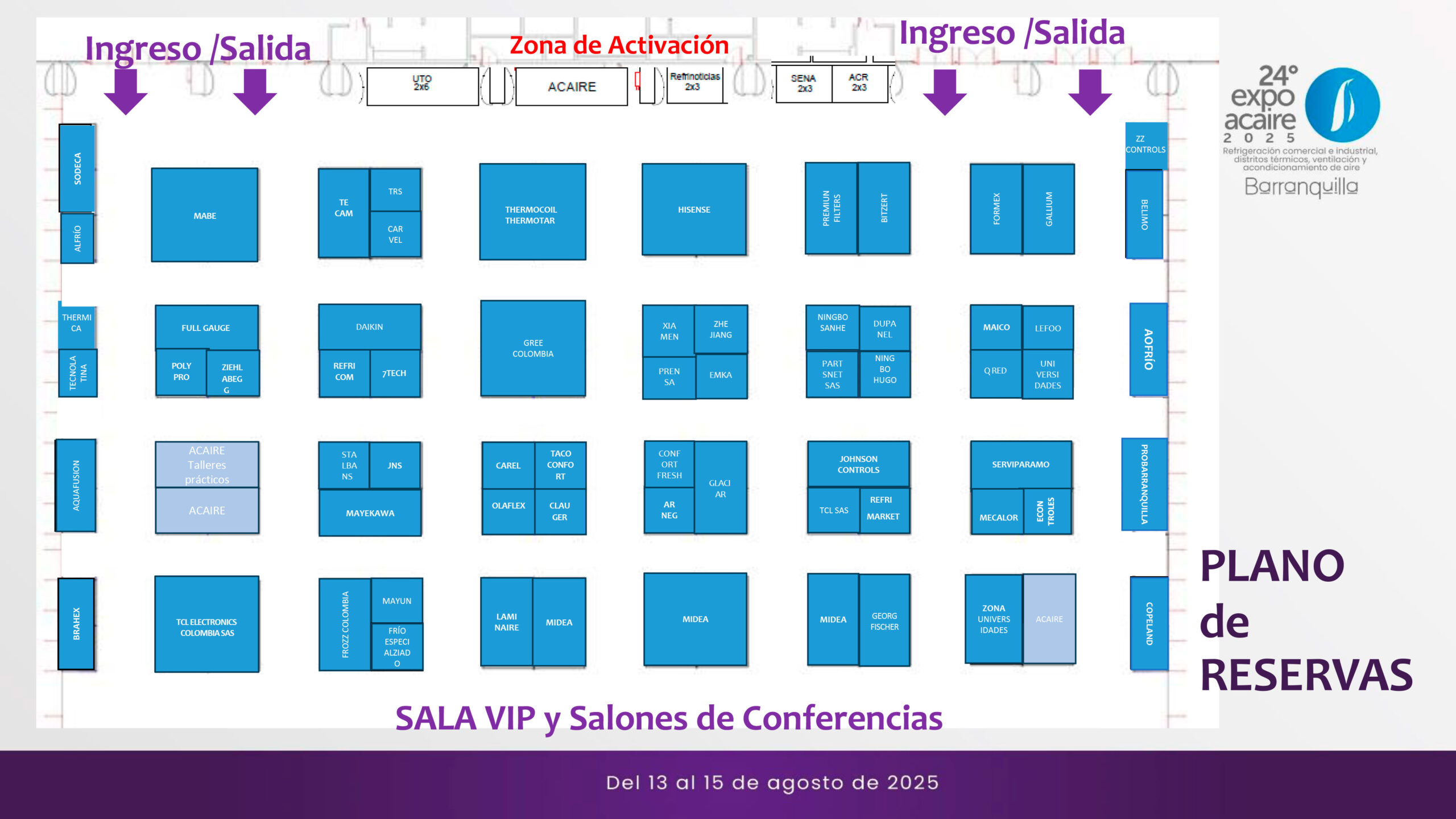 Plano de Exhibición Visitantes: Reserve su cupo para participar en el congreso y muestra empresarial sin costo Regístrese aquí sin costo Ver plano